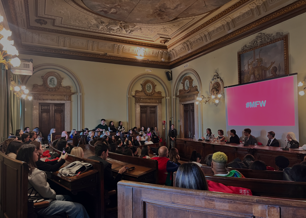 One highlight of the panel was the interactive exchange with Chinese national television, providing insights into cross-cultural perspectives and addressing inquiries from students and designers at the fashion hub, particularly from the “Designers for the Future” section curated by the Camera Nazionale della Moda Italiana.
