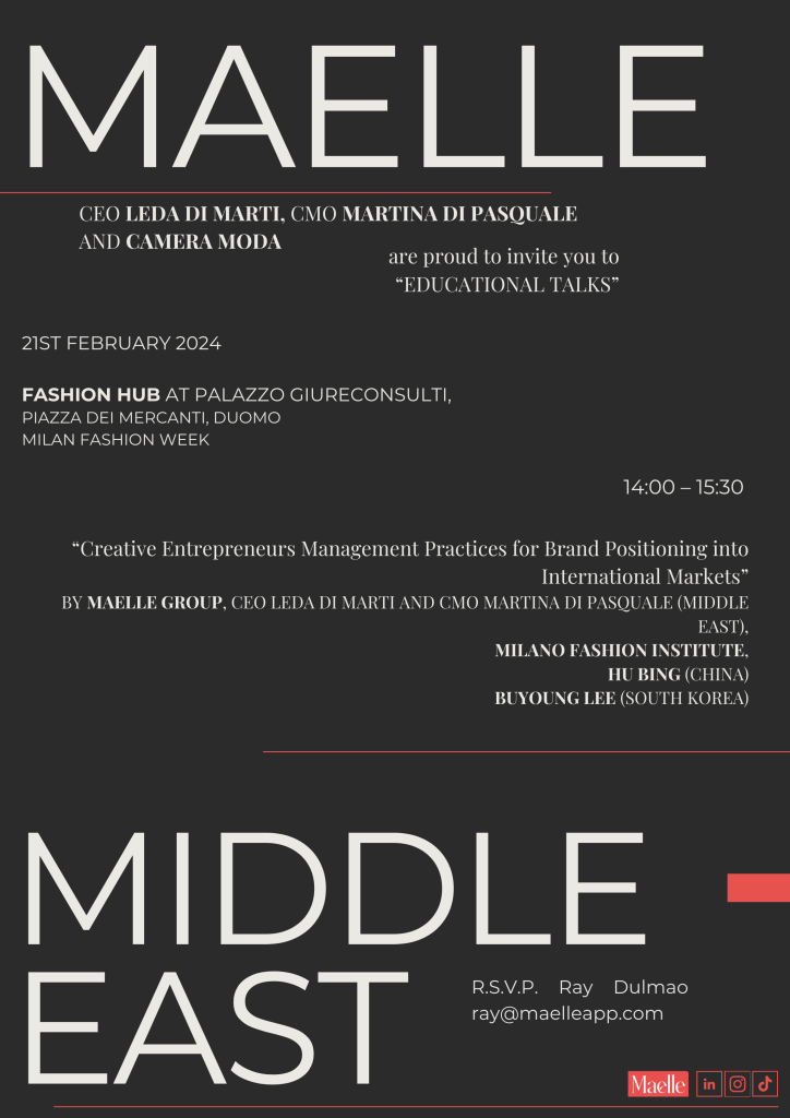 Martina Di Pasquale shed light on Maelle Group’s commitment to nurturing emerging talent through education initiatives in the UAE and Saudi Arabia. Collaborating with universities across Europe and the GCC, Maelle Group is fostering a new generation of fashion professionals by providing them with enriching learning experiences and connecting them with industry stakeholders. Di Pasquale’s emphasis on education and mentorship reflects a proactive approach to talent development and industry sustainability.
